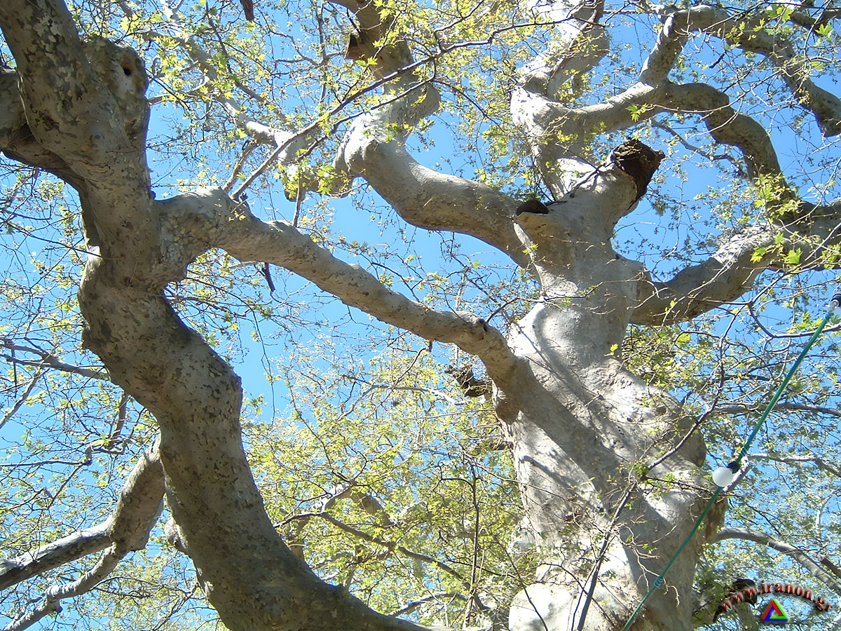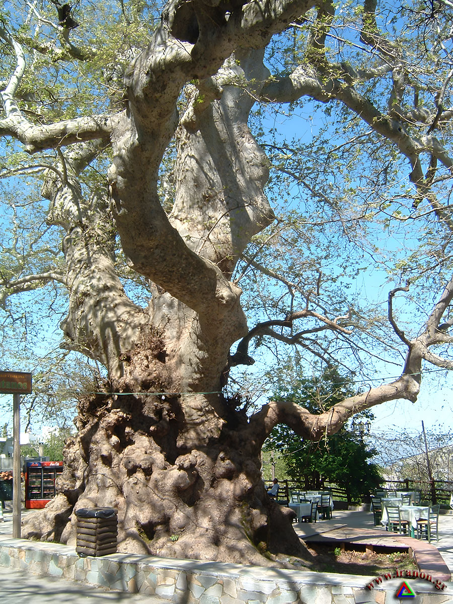 Η κύρια ατραξιόν είναι ο πλάτανος της κεντρικής πλατείας. Με διάμετρο κορμού που ξεπερνά τα οκτώ μέτρα στη βάση, και ηλικία πολλών–πολλών αιώνων (μερικοί υποστηρίζουν ότι η ηλικία του ανέρχεται σε 2000 χρόνια), είναι μάλλον το γηραιότερο δέντρο που έχουμε συναντήσει. Παλιότερα, μπορούσε κανείς να παρατηρήσει πάνω του ένα ιδιαίτερο χαρακτηριστικό: προκειμένου να στηρίξει τους τεράστιους, βάρους τόνων κλώνους του, ο ζωντανός αυτός οργανισμός είχε δημιουργήσει συνδετικούς βραχίονες – κλαδιά, δηλαδή, που φύτρωναν και από τις δύο μεριές, χωρίς ελεύθερο άκρο. Ωστόσο, στις 9 Δεκεμβρίου του 2024, οι στηριζόμενοι κλώνοι έσπασαν. Όπως περιγράφεται από τους ντόπιους, εν μέσω νηνεμίας και προκαλώντας τρομερό θόρυβο, πρώτα κατέρρευσε ο ψηλότερος κλώνος, παρασύροντας με την πτώση του και τους υπόλοιπους.