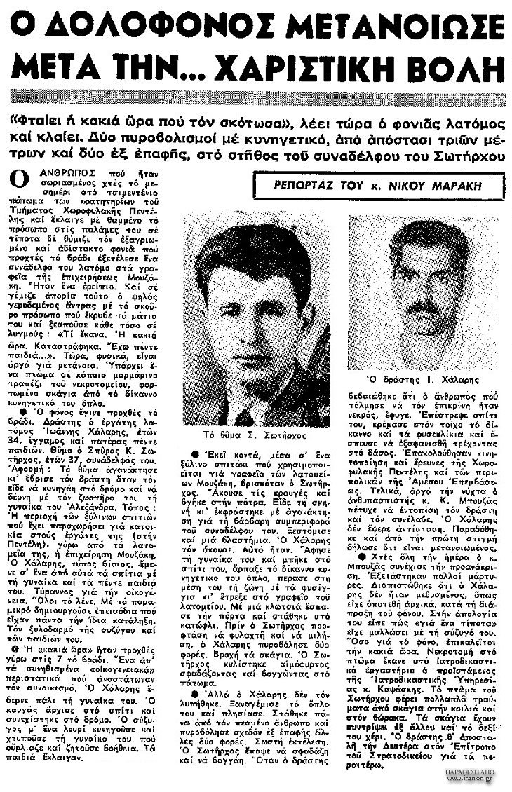 Αριστερά: εφημερίδα "Ελεύθερον Βήμα", φύλλο 29/06/1933, σελίδα 4. Δεξιά: εφημερίδα "Το Βήμα", φύλλο 01/10/1967, σελίδα 4. Σχετικό είναι και το περιστατικό ληστείας και απόπειρας βιασμού Αγγλίδας φοιτήτριας αρχαιολογίας από νεαρό λατόμο στην περιοχή της σπηλιάς, το οποίο αναφέρεται σε δημοσίευμα του 1958 που παραθέσαμε σε προηγούμενη ενότητα. |